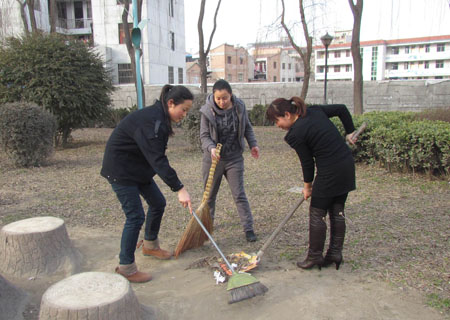路義務(wù)打掃街道衛(wèi)生,清洗街道護(hù)欄,并對(duì)就近的公交站點(diǎn)進(jìn)行了擦洗。